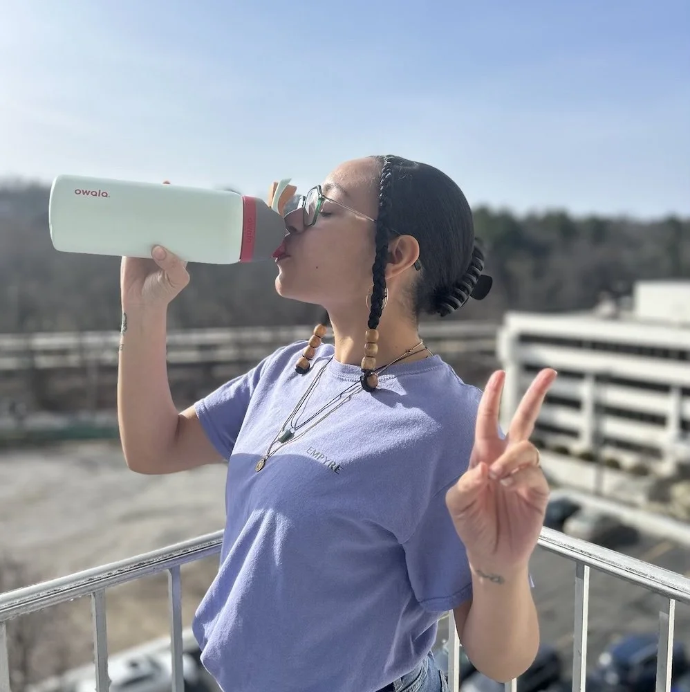 Start even smaller by simply making water more visible and accessible to you. The more you can see it, the more you can condition yourself to drink it more often. The ideal amount of water you should consume varies depending on factors like sex and lifestyle, but a good rule of thumb is to drink at least half your bodyweight in ounces daily. A little more if you’re exercising, going to happy hour, or smoking regularly. No judgement, just vibes here too… but stay hydrated!
