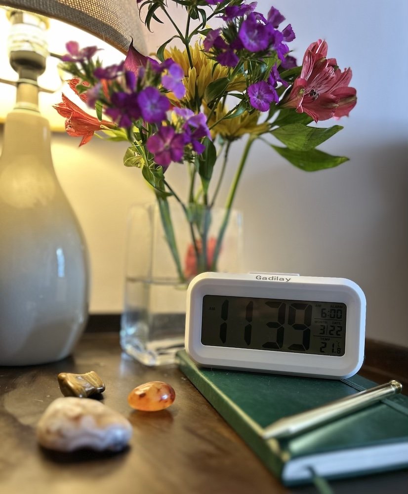 Reduce screen time to help your brain wind down. Try to disconnect for at least an hour before going to bed. Read a book, stretch, draw/color, meditate, journal, or my favorite, just be.